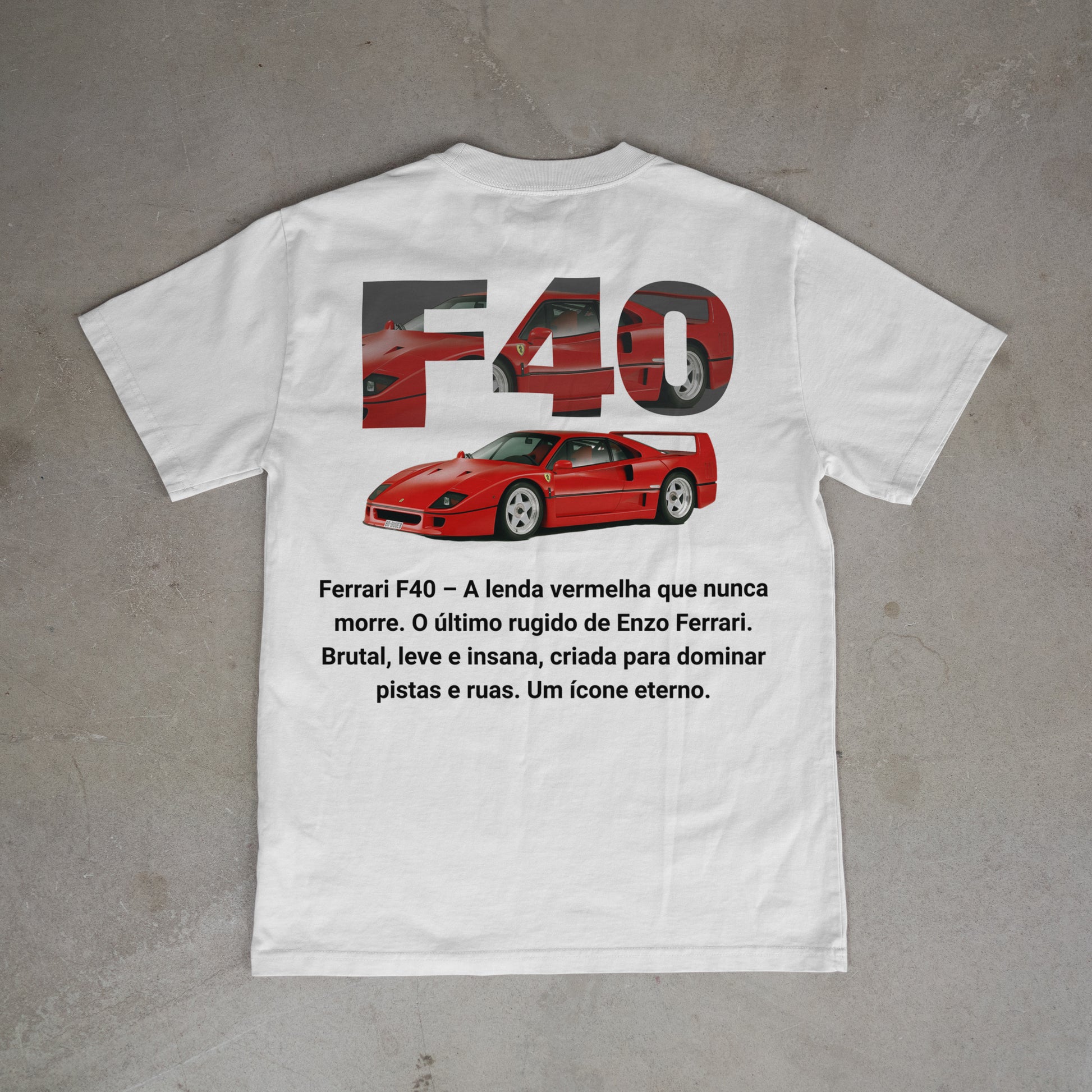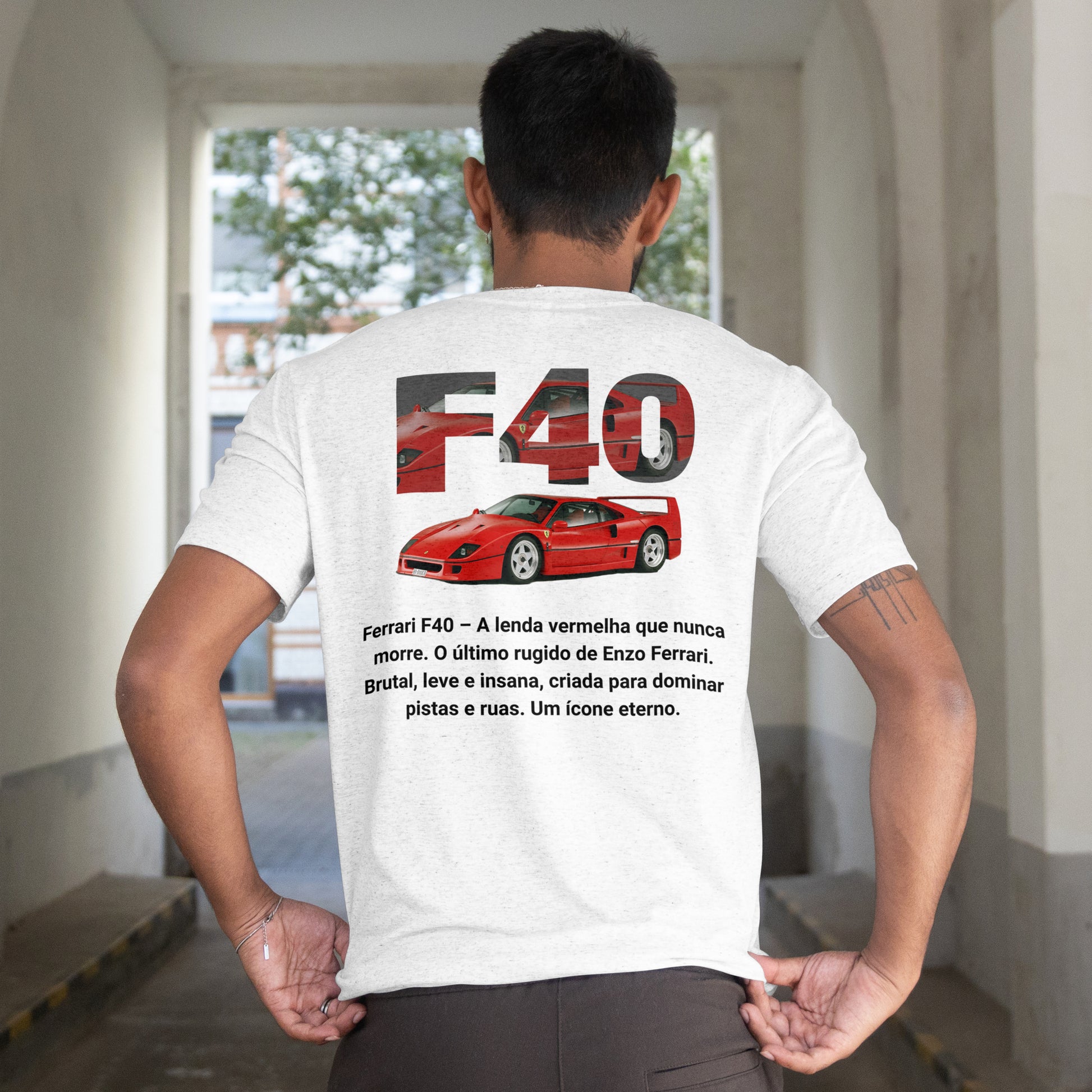 A lenda das pistas agora no seu estilo. A Ferrari F40, símbolo de potência e exclusividade, estampada em uma peça que combina conforto e atitude. Uma camiseta feita para quem respira automobilismo, em qualquer idade.